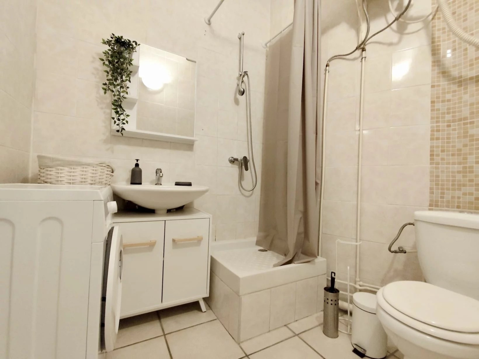 - d'une salle d'eau avec toilette et machine à laver.