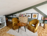 - Au 2ème étage, des combles sont aménagés avec une jolie pièce de vie mansardée, lits, salle de bains et WC.